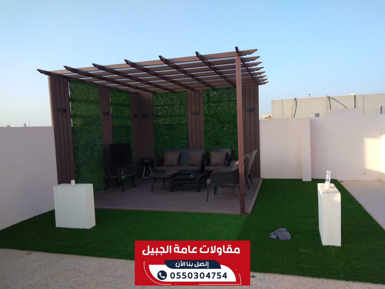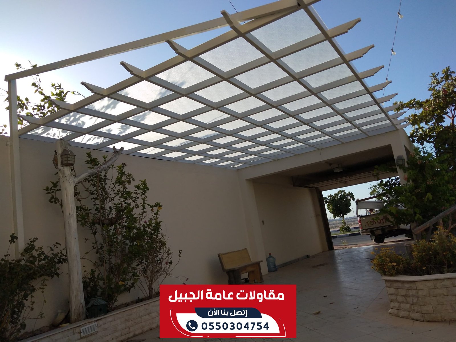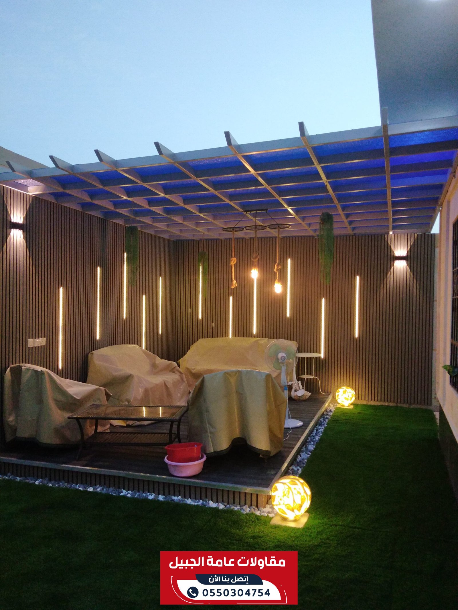 خدماتنا: جميع اعمال المقاولات والترميم والديكورات والمظلات والسواتر